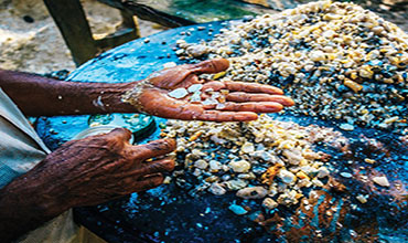 Meetiyagoda is just a couple of kilometres from the coast, midway between Ambalangoda and Hikkaduwa, sitting over the earth’s largest pegmatite vein of moonstone. The ten mines in Meetiyagoda are by far the world’s primary source of blue moonstones.